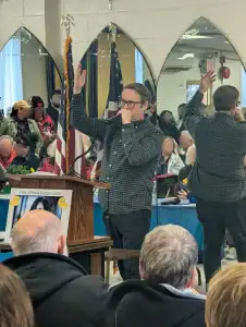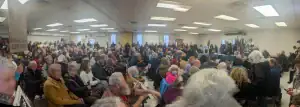 The event’s discussions were far-ranging and pulled from the Google form where guests had RSVP’d. Topics included cuts on Veterans’ issues, Immigration, Ukraine, Education, the 9/11 victims’ compensation fund, Social Security, Medicare and Medicaid.