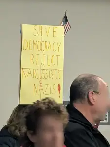 On a rainy day of national #HandsOff protests, hundreds of Staten Islanders (and a clutch of folks from Brooklyn) took to All Saints Episcopal Church’s meeting room for an empty chair town hall. With an absent Congressmember (Nicole Malliotakis, NY-11, R), it fell to local organizer (and former Congressional candidate) Mike DeCillis to put together an event where Malliotakis’ constituents could hear from experts and one another, if not their elected representative. Although he made sure to invite our Congressmember to the event via official government channels (with social media reminders), she failed to show up.